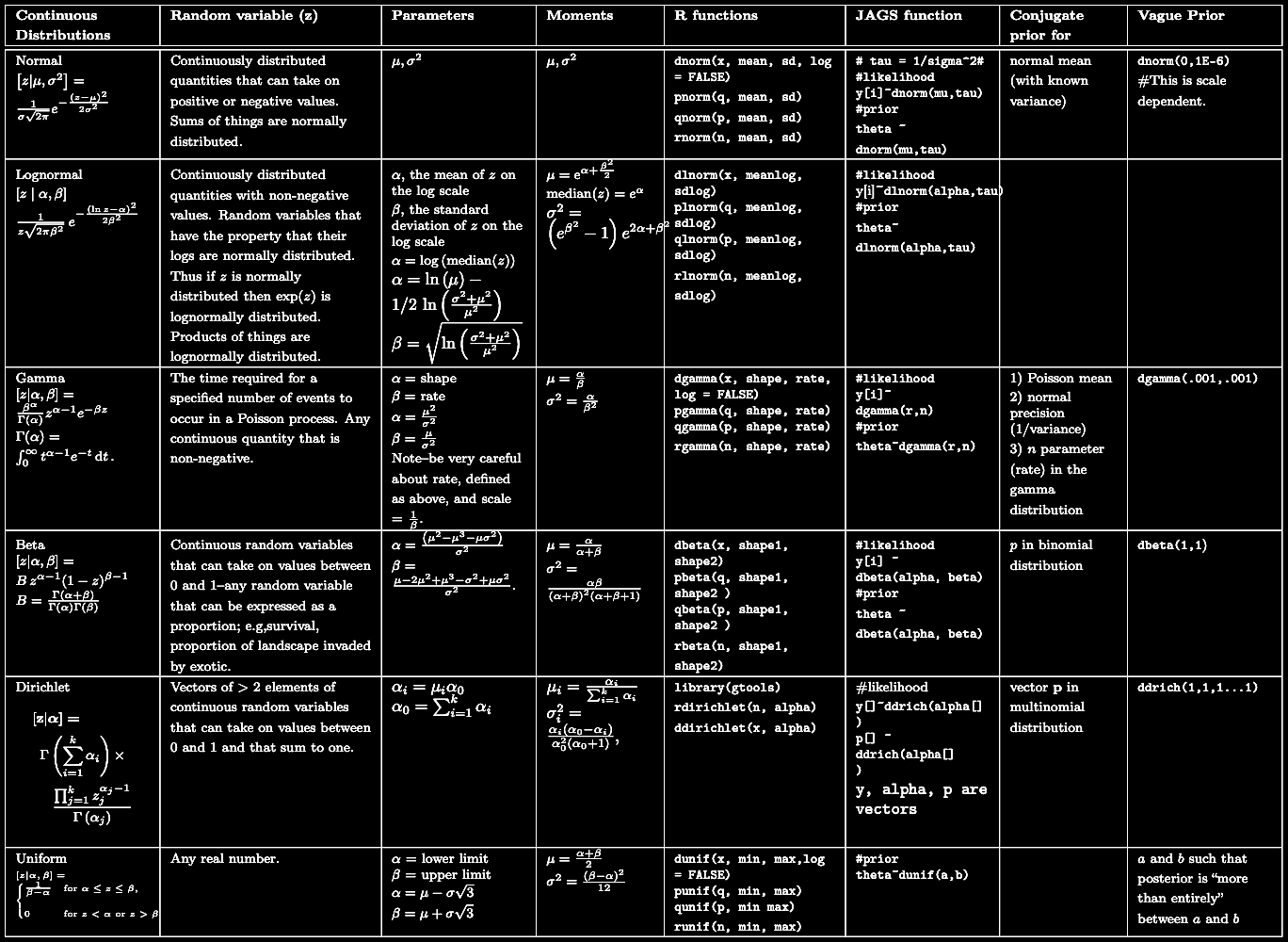 More details on different probability distributions are shown in the tables below. Click on the images to display an enlarged version in a new tab in your web browser.