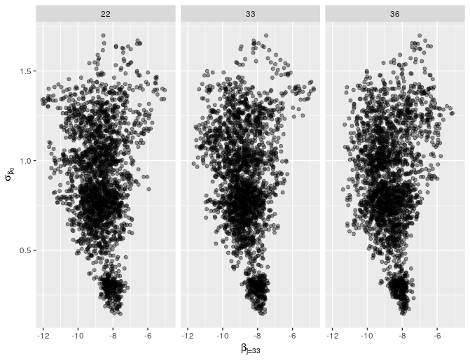 It’s possible to escape this funnel with a small reparameterization, called the “non-centered” parameterization. We won’t go into detail here, but the basic problem, and solution, is described by others. The outputs used to find evidence of a funnel (and hence a clue that the non-centered parameterization may be needed), are found here.